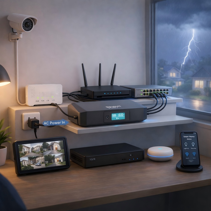 Provides 30–120 minutes backup for routers & CCTV, keeping your network online during outages.